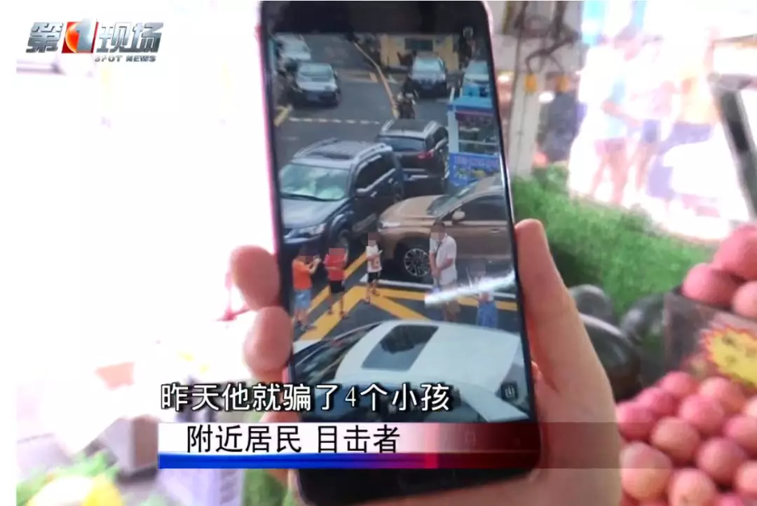 ↑一位孩子家長還給記者看了昨天目擊者拍攝的照片,說是一名男子用零食誘騙了4個(gè)小孩,騙至停車場準(zhǔn)備上車時(shí)被及時(shí)攔下。