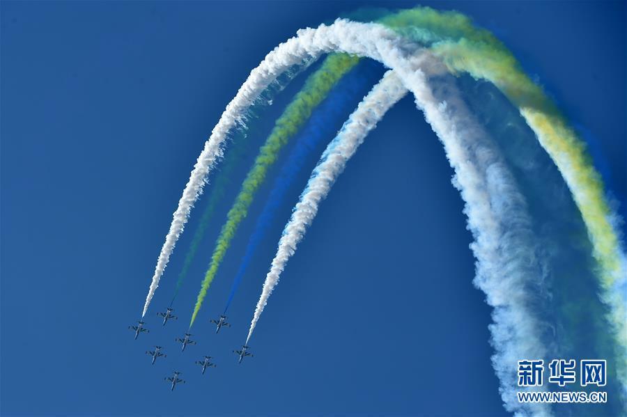 11月6日,中國空軍八一飛行表演隊(duì)在航展現(xiàn)場進(jìn)行飛行表演。當(dāng)日,第十二屆中國國際航空航天博覽會在珠海開幕。新華社記者楊光攝