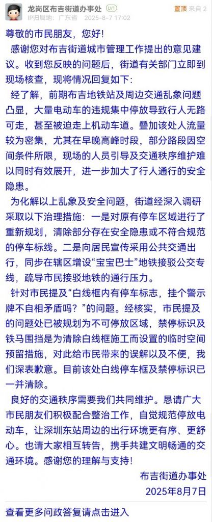 良好的交通秩序需要我們共同維護(hù)。懇請廣大市民朋友們積極配合整治工作,自覺規(guī)范停放電動車,讓深圳東站周邊的出行環(huán)境更有序、更舒心。也請大家相互轉(zhuǎn)告,攜手共建文明暢通的交通環(huán)境。感謝您的理解與支持!