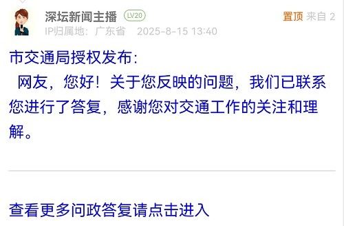 各職能單位如需對網(wǎng)友反映的問題進行回應(yīng),可在深圳論壇注冊官方賬號并通過認(rèn)證,回帖進行回應(yīng)。