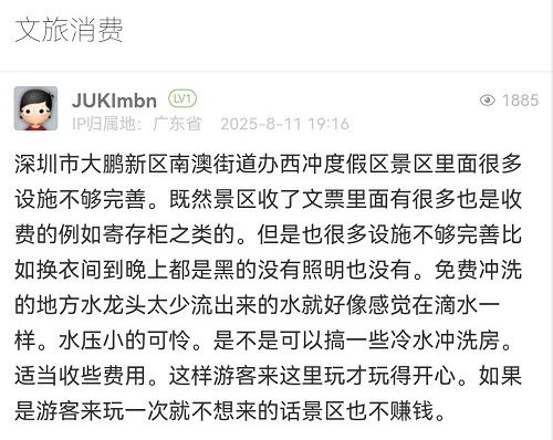 三、關(guān)于免費沖洗水龍頭水流問題,因節(jié)假日高峰期同時沖洗的游客較多,導(dǎo)致水壓不足,水流較小,已安排人員進行檢修,并計劃增加沖洗設(shè)施。
