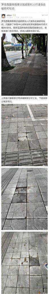 34. 帖文《筍崗西路南側(cè)靠近園嶺新村人行道多處破損和松動》