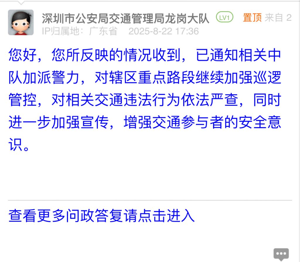 涉及單位:市公安局交通管理局龍崗大隊(duì)